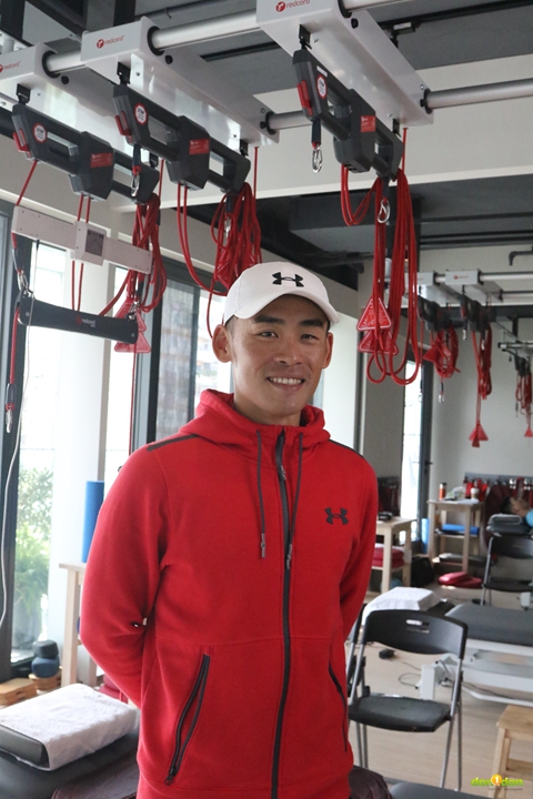 即使在外國移地受訓,他也會帶上 Mini Redcord跟教練以遠端聯絡進行訓練