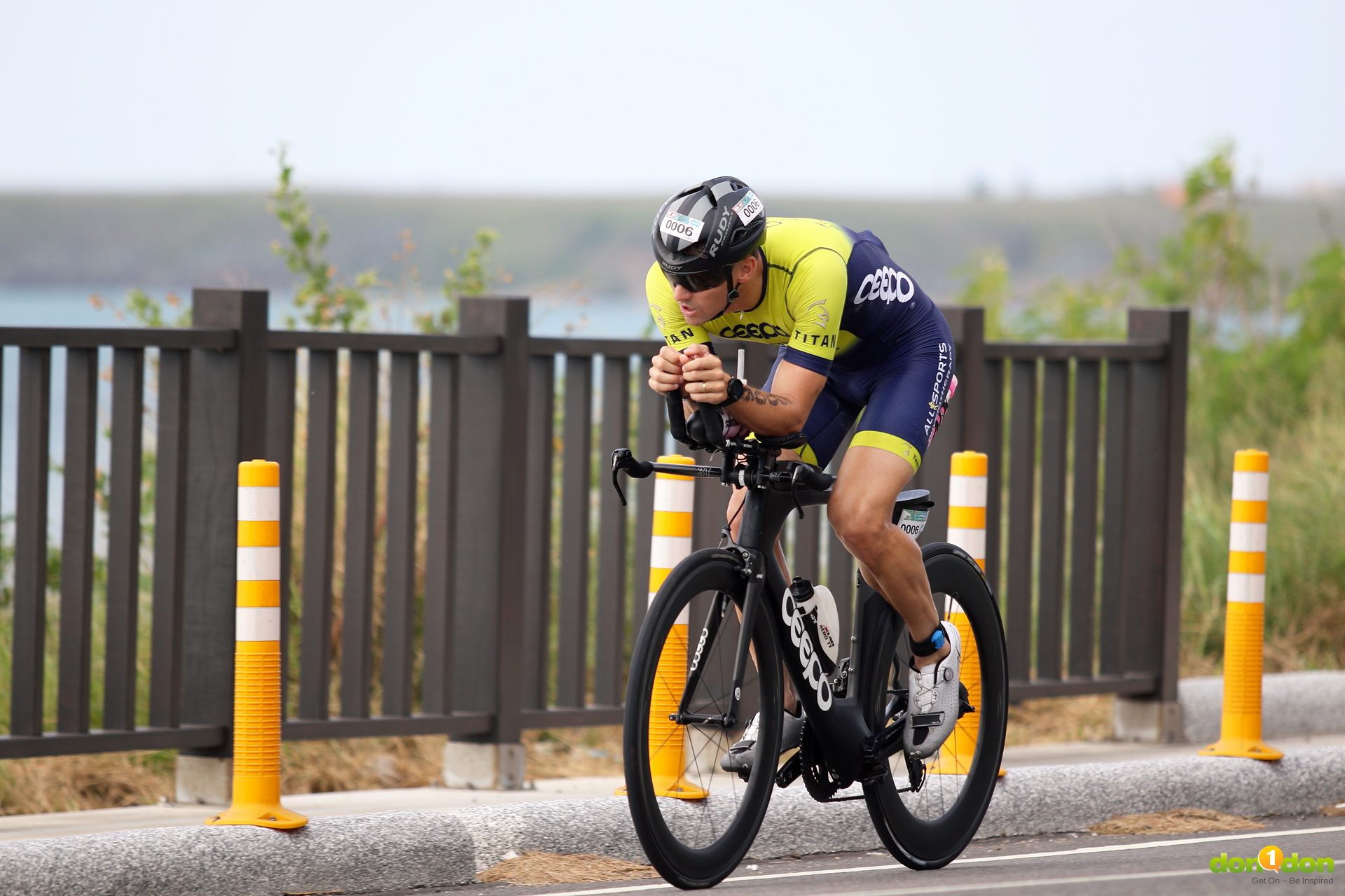 Daniel Fontana(#2)及Jarrod Harvey (#6)在疾風烈日的賽道上競爭激烈,Daniel Fontana開跑後就展現衛冕的氣勢,企圖將距離拉開,但年僅28歲的Jarrod Harvey完全沒有想要屈服,反而在10公里後超前,並將差距拉開達1分30秒。Daniel Fontana沉住氣在30公里處將差距追回並超前,最後以近3分鐘的優勢,Daniel Fontana成功的衛冕冠軍,成績7:47:33「我在出門前告訴我剛出生兒子說,明年我會帶他到KONA,因為如此,此時此刻,這個勝利有了特殊的意義。」Daniel Fontana接著說,他已經43歲,在這樣菁英層級的比賽一點都不容易,但是他將會用他的經驗與資歷去推廣鐵人三項運動,讓更多人了解它的魅力,並用正確和健康的方式開始以及繼續練習。