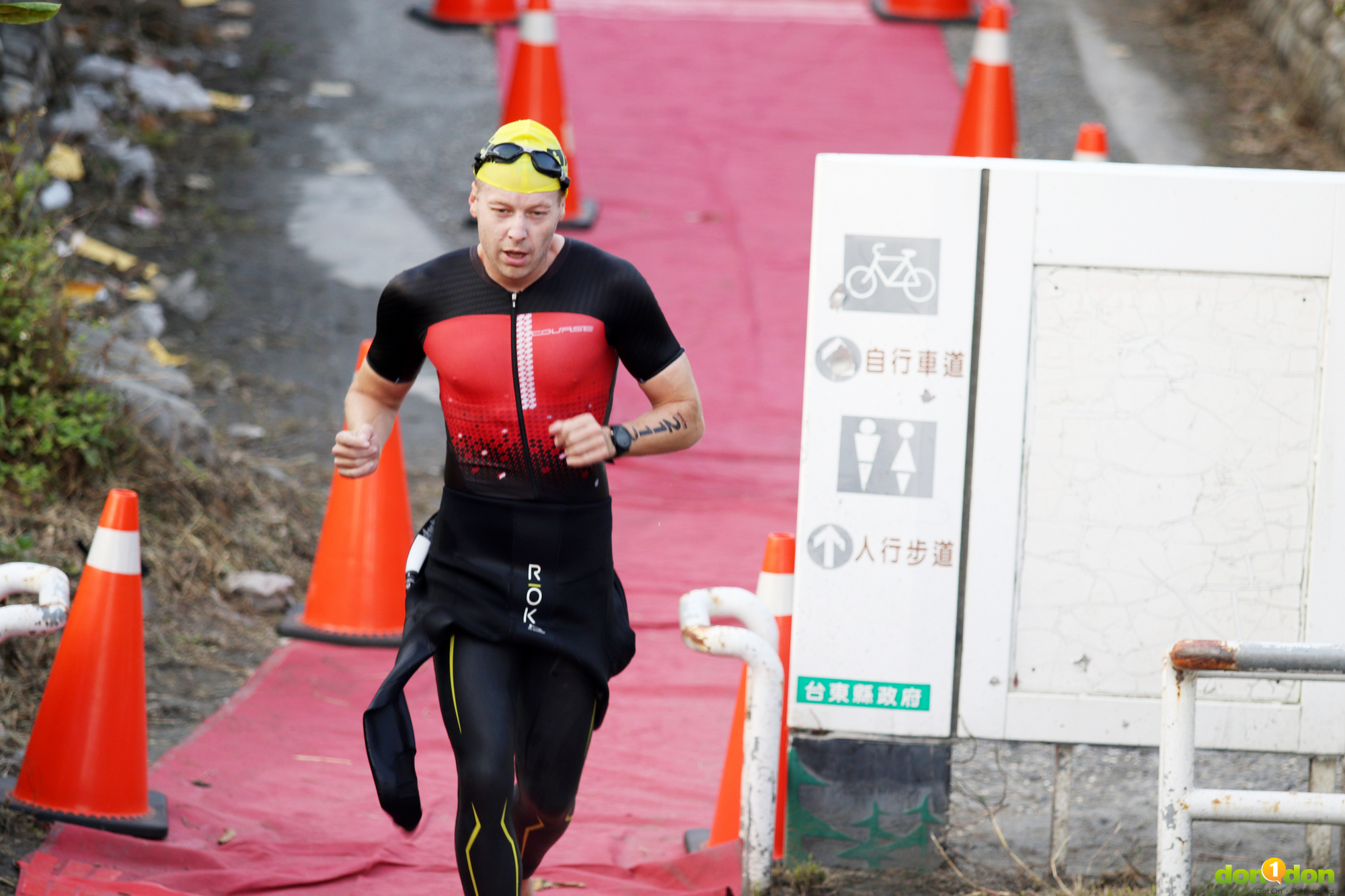 比賽一開始,1900公尺的游泳出現讓人驚訝的表現,分齡組選手陳致穎(CHEN CHIH YING, 1015)與謝汶涓(HSIEH WEN CHUAN, 1445)分別以23:33及23:36完成,緊接在早他們7分鐘開賽的職業女子組選手Mirinda Carfrae(0012)上岸,也較職業男子組游泳第一集團,包括了Dylan McNeice (0004 )、Max Neumann(0009)及Tim O’Donnell(0001)的成績更快,他們分別游了24:09、24:10及24:14。