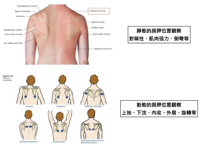 由於現代人坐姿生活、長期使用手機、電腦等,許多人的肩胛位置在靜態觀察上就出現了不平衡或偏移的情況。有時靜態觀察兩側的肩胛位置呈現對稱,但是動態檢查時候就出現不平衡或是活動狀態異常等現象,也應該要被納入調整的名單裡。