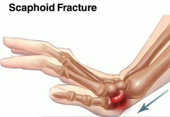 撐地動作加上身體重量衝擊,容易造成遠端橈骨或者是舟狀骨的損傷甚至骨折。舟狀骨的骨折問題之所以重要,除了它很常見之外,也因初期X光片診斷率約為七成,可能被忽略;另外,因為人體腕部血液供應狀況,造成近端舟狀骨骨折後難以自我癒合,若未及時處理,可能演變成缺血性舟狀骨壞死!