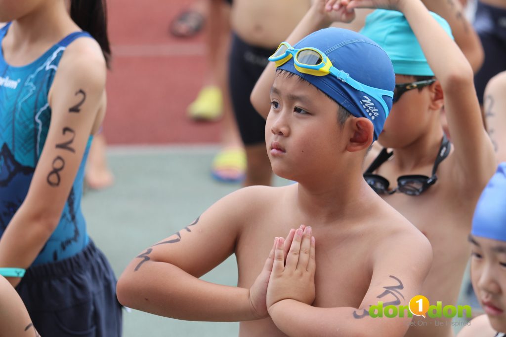 看台上的家長們伸長脖子,希望可以看到小孩們在水中的游泳英姿。