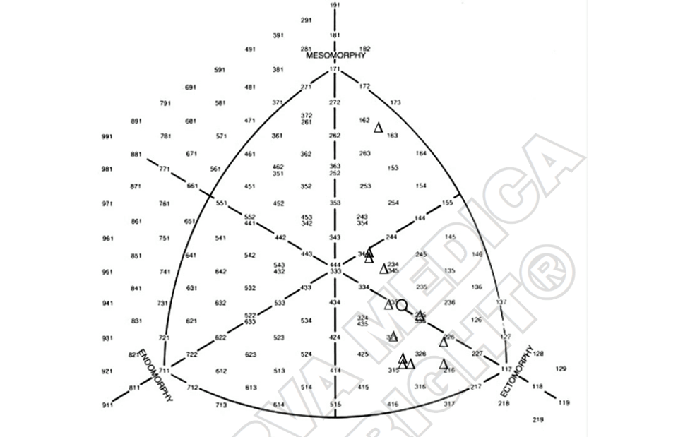 這些的體型比較大多數是脂肪百分比是 8.87% 正負 0.7%(參考附圖一)。甚至根據原始資料(附圖二),這些人大多數是瘦長缺乏肌肉(ectomorph)的族群。