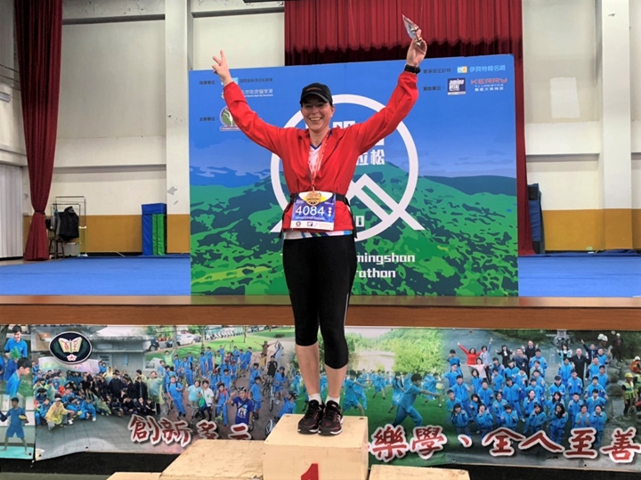 今年共吸引將近900人參賽,更有來自8國31位外籍跑者共襄盛舉;其中,來自德國的施碧娜Sabrina Schmidt-Koschella,目前擔任德國在台協會的副代表,已連續三年都來挑戰陽明山的全馬,今年獲得全馬女子組排名第七、分齡組女總一的好成績!
