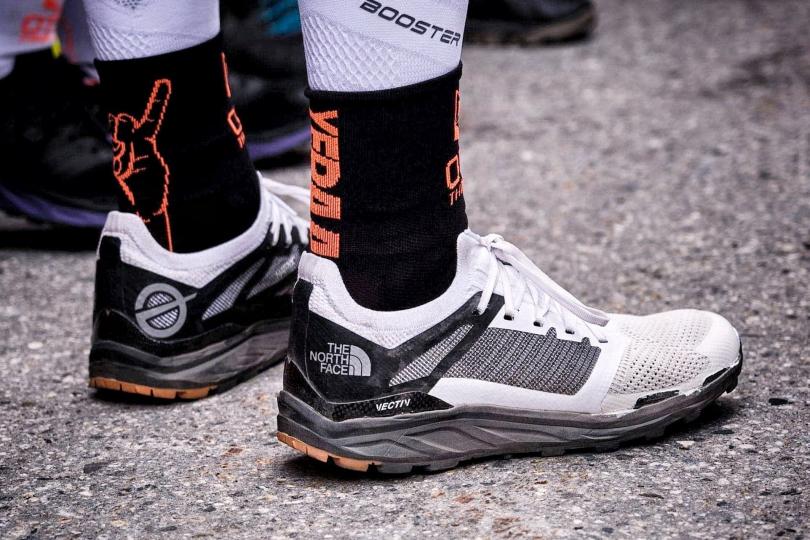 不久前,越野跑者 Dylan Bowman 穿了 Flight VECTIV 在華盛頓山以 16 小時 58 分 41 秒完成 7,000 公尺海拔、150 公里的環形路線 FKT,比之前的最佳時間縮短了 90 分鐘以上。另一位 TNF 跑者 Kaytlyn Gerbin 在協助 Bowman 完成之後,也同樣著 Flight VECTIV 在同樣地點創下 18 小時 41 分的時間(史上第四快)。最後,去年 UTMB 優勝者 Pau Capell 在本週也以 21 小時 17 分 18 秒迅速完成獨跑 UTMB 路線。