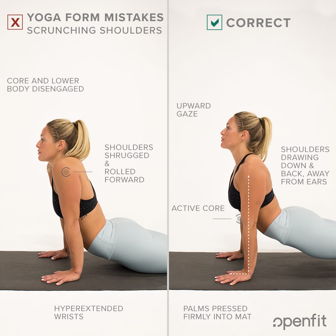 聳肩是瑜珈中常見問題,因為我們經常過度使用上斜方肌,Swanson說:「當我們像戰士式或樹式那樣將手高舉過頭,肩膀時常會抬得太高,向耳朵擠壓,這個狀況也會發生在像上犬式那樣後彎姿勢,這會壓迫你的頸椎。」