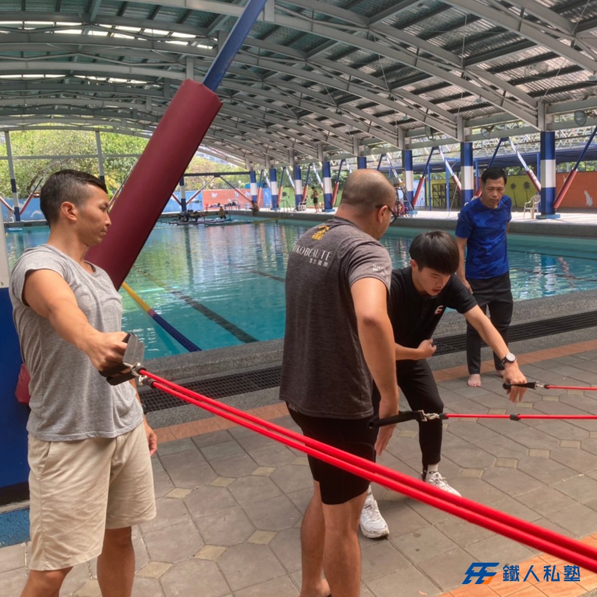 大多人的自由式打水動作,幾乎都是用到小腿去踢水、用力製造水花,當髖關節沒有連動到大腿去進行打水這個動作,反而會讓你感覺更累、更難前進。建議初學者,可以先藉由「陸上訓練」來誘發自由式打水時會用到的肌群來進行發力。