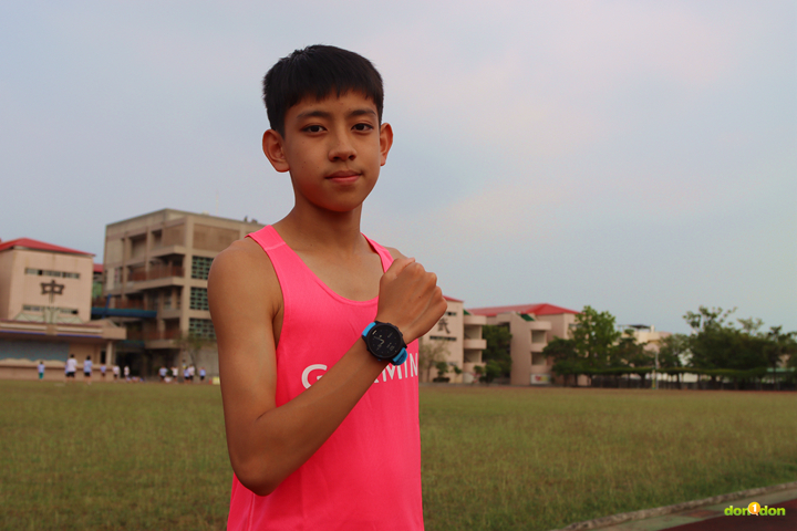 2022 年簽約加入 TEAM GARMIN ,對子傑來說是莫大的肯定。左撇子的他習慣把手錶戴在右手,平日生活裡常會檢視自己的心跳與壓力狀態,而在訓練或比賽過後,會認真地在 GARMIN CONNECT 調閱自己的訓練數據。「我現在的步頻大概是一百七、一百八上下,步伐跨很大,」他說道:「現在的訓練希望能把步伐小一點,然後把步頻再加上去。」身高將近一百七十公分的簡子傑,體重還不到五十公斤,等著升上高中之後會鍛鍊得更為結實且強壯。