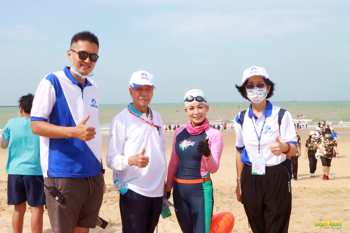 成立於民國七十六年,上萬名個人會員的中華民國成人游泳協會江秀春教練暨會長。多次參加澎湖海泳、橫渡日月潭,這次帶領協會好友們共襄盛舉料羅灣海泳活動。上岸後的她也分享了自己的心得:「這次的浪比較大一點,對新手來講要克服心理障礙。料羅灣的海水很舒服,不會特別冷或熱,對於喜歡長泳的人來說很不錯。」