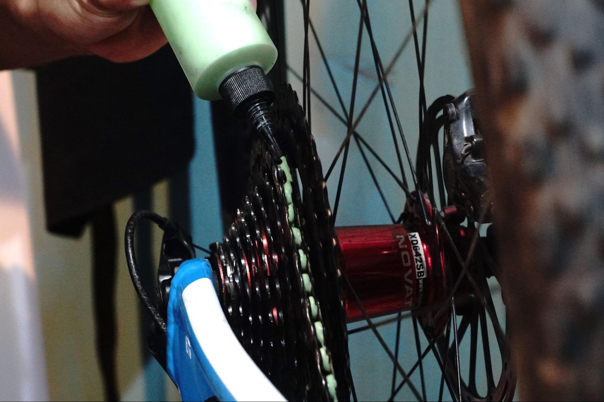 傳動系統由許多配件組成,包括前後變速器、鍊條、飛輪和輪組。鍊條上總是佈滿著潤滑油,而這些潤滑油在騎乘過程中會黏附至其他配件,過多的油汙沾染了塵埃就變成油泥,對於鍊條、飛輪都會是磨耗的主因。
