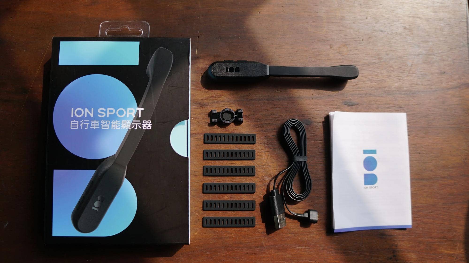 ION Sport 自行車智能智慧顯示器盒裝非常輕巧,智慧顯示器外觀造型簡單俐落,連結顯示視窗和後端控制端的是軟質的塑料件,可以隨意塑形彎曲,但具備足夠的韌性,彎折到需要的曲度後除非外力施壓,不然都很穩固不易變形。這部分便是 ION Sport 利用的一個主要技術產品「可撓式 OLED」。