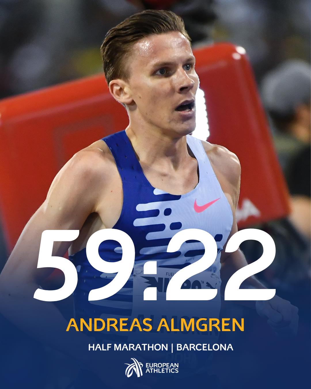 其中找到瑞典時,發現了這名選手 Andreas Almgren,他目前是世界級的長跑運動員,在 2024 成績來到半馬 59 台(巴塞隆納)、10000 m 26 分尾(the ten 10000 m 大戰)