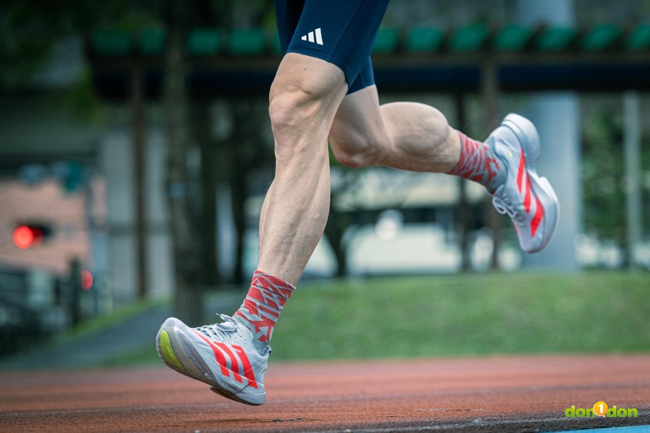 平時賽事張景敦最喜歡競技二鐵跑襪,除了可以快速穿脫,輕壓手握感的包覆腳感、8 字鎖跟的繃帶機能穩定支撐腳踝,讓他感覺雙腳與鞋子合而為一,還有良好的透氣排汗功能,讓張景敦即使在大量流汗之後也不會感到悶熱,成為他在 42 公里飆速的最佳夥伴。