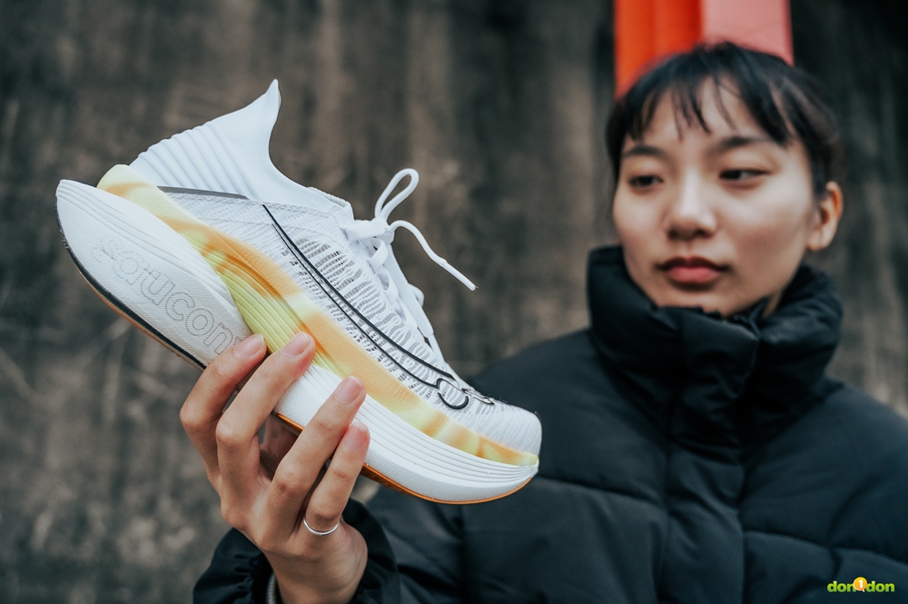 近期都在公路上訓練的珮慈,穿著 Saucony Endorphin Elite 2 跑了幾回,也曾一次跑了 14 公里。在過去的跑鞋經驗裡,許多鞋款都是踩起來腳感偏硬,鞋面 (腳背處) 與後足鞋杯做工比較不那麼細緻。只是一場十公里賽事,完賽後便察覺可能是磨傷腳踝、或是磨傷足部的內外側。即使成績與速度再好,卻總是苦不堪言。