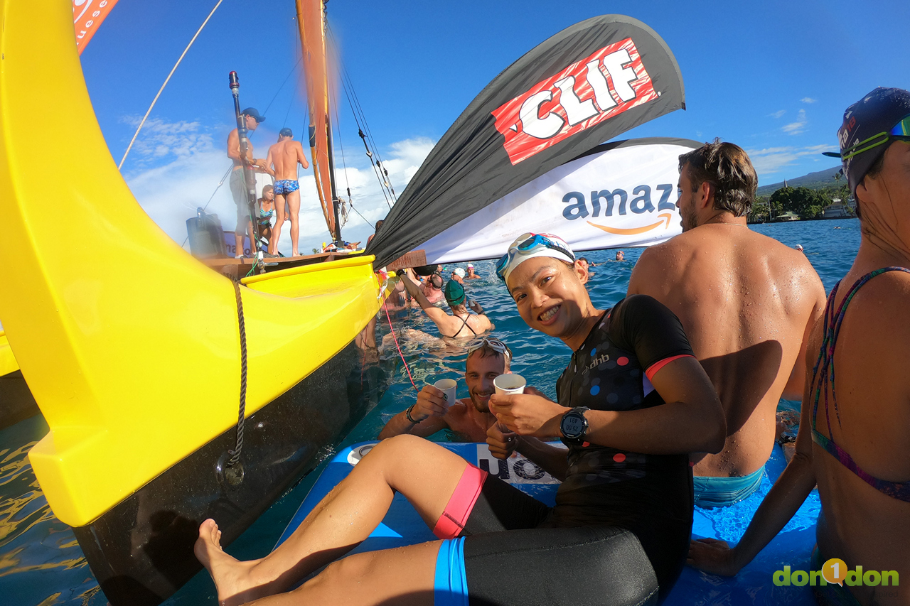 回到我們熟悉的KONA,KONA是鐵人三項的發源地,是IRONMAN的夢想的起源,這讓KONA在鐵人三項選手心目中,有著獨特的地位與吸引力。剛剛到KONA的時候會發現,這邊到處都有人在游泳,每天早上的游泳賽道上滿滿的選手在練習,海上還有咖啡船提供咖啡給選手喝,KONA的游泳賽道是直去直回的方式,有選手說游泳的時候感覺是被旁邊的人推著出去,又推著回來,而因為這邊的水溫較高,對選手來說,比較大的挑戰,或許是不能穿防寒衣,以及水中出發踩水要踩蠻久的。