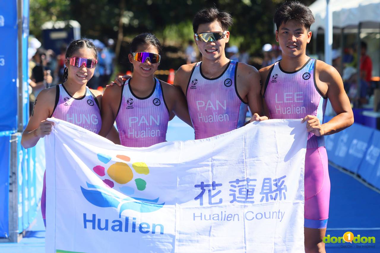 銀牌由花蓮縣隊展現驚人韌性,在洪宥涵、李崇翊、潘昱婷及新科個人賽金牌潘子易的通力合作下拿下。花蓮縣第一棒洪宥涵擔當,游泳項目在第一集團完成,但是在出轉換區的時候發生失誤,但她仍扛下壓力,第4位交棒給李崇翊,儘管是第一次參賽,洪宥涵展現驚人的抗壓性「失誤的時候,只想著把鞋子撿回來繼續比賽。」她說「過去是柔道選手,跟柔道場上四邊都是人群圍觀看你比賽,鐵人三項賽事的壓力相較就沒有那麼大了。」