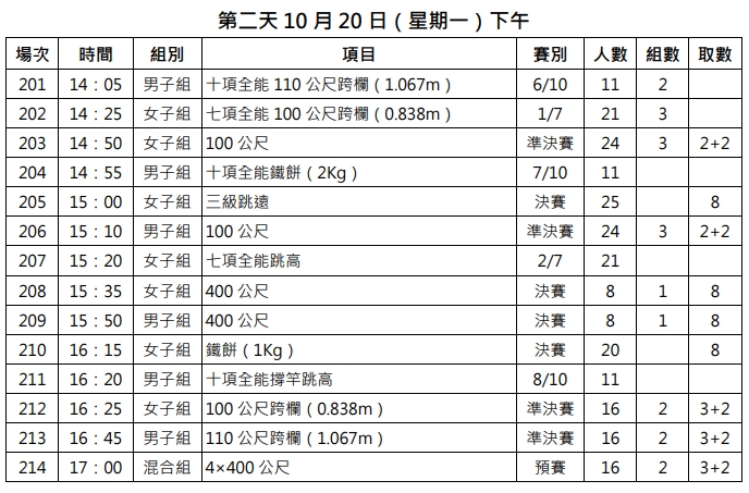 再度連霸拿下一萬公尺金牌的謝千鶴,賽後訪問時神情相當輕鬆,表示雖然有壓力,但她抱著「跑一次就少一次」珍惜的心情參賽,從學生時期就在場上馳騁的她,也很感念直到現在還有機會代表自己的縣巿參賽;問她是否有特地吃什麼課表操練?她笑著說,這次參加的項目不少,所以就是盡力跑了。