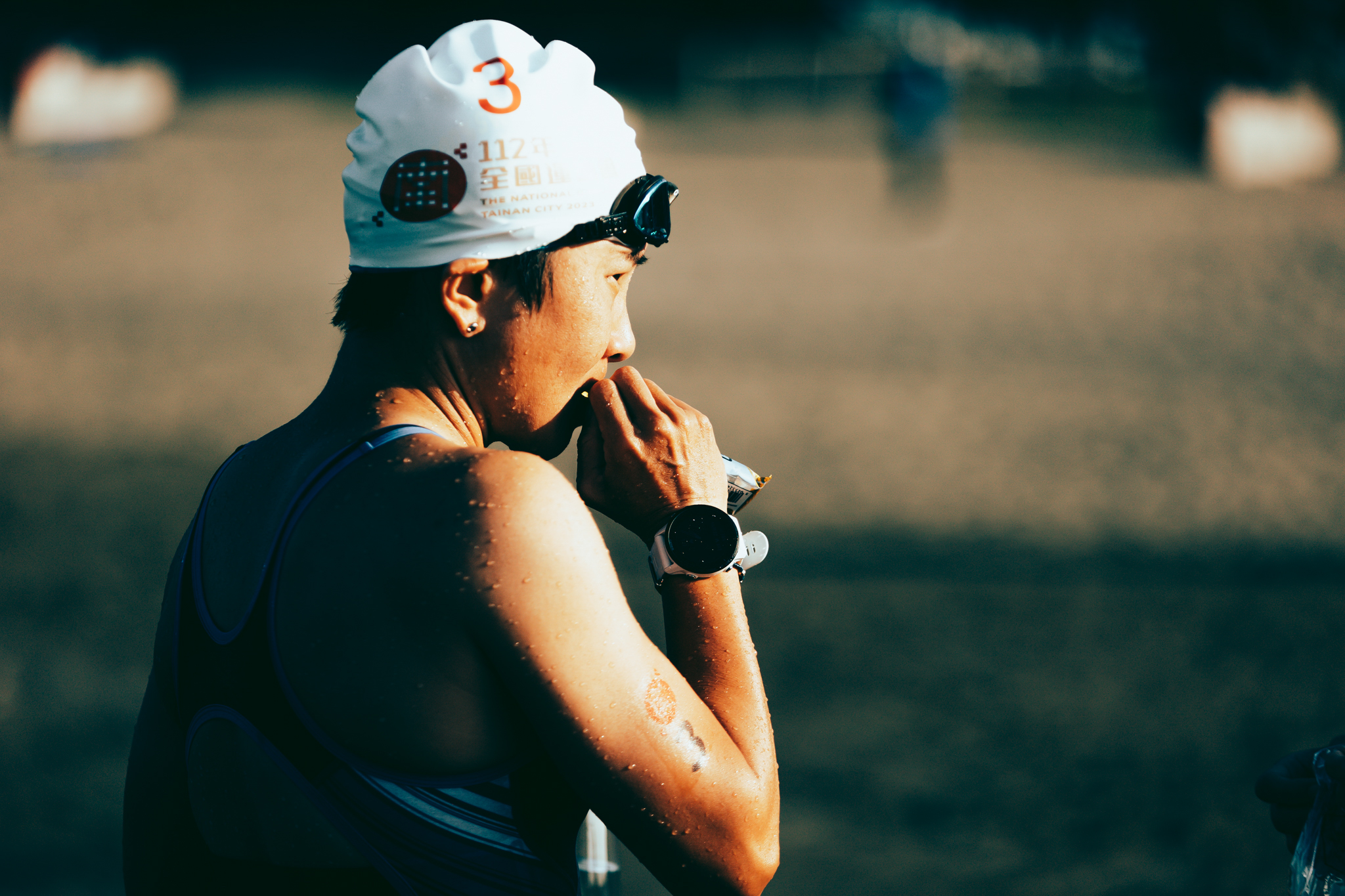 「唯一比較疏忽的是轉換區吧,兩個轉換區都待了 8 分鐘,到底在幹嘛啊。」Meiya 自己都笑了起來:「想說要好好感受這個比賽,所以在轉換區就好好地喝水吃補給,擦乾腳穿好襪子,確保身心都準備好再出去。」酷熱的路跑項目令跑者叫苦連天,但 Meiya 獲得了昇諺教練給的冰帶領巾跟涼感帽,不只沒有熱暈,還能維持穩定的腳步前進。