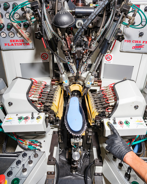 在 Nike 的產品開發體系中,精密工藝與親力親為的製造精神一直備受重視。於這座占地九萬平方英尺的 Bowerman 鞋類實驗室中,一位團隊成員正為零件進行精密黏合前的細部上膠作業。