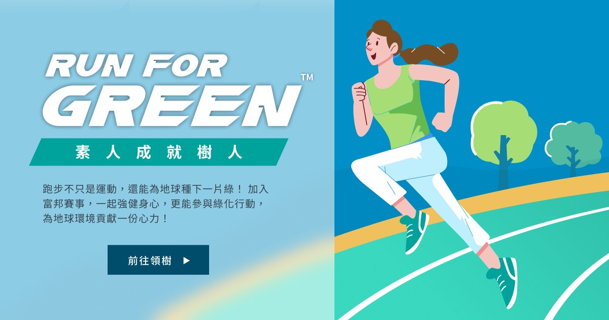 富邦金控於 2021 年啟動 Run For Green™ 計畫,以「每一公里都能為地球種下一棵樹」為核心概念,號召民眾將運動能量轉化為具體環保成果。