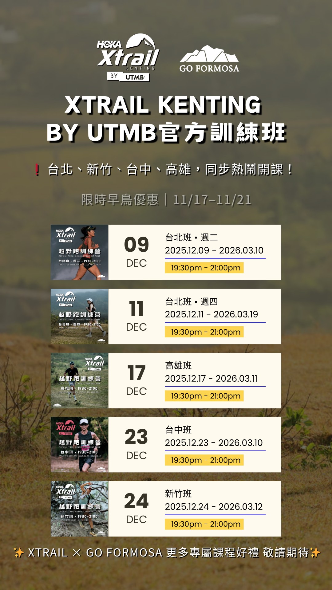 為了讓有意參賽的選手,幫助能跑得更好更順利, HOKA 與 Xtrail 此次也將攜手 GO Formosa 開設官方越野訓練營與體驗活動。為了讓大家在正式上場前就能掌握地形特性,HOKA 與 Xtrail、並攜手 GO Formosa 特別規劃了「貼近實戰」的專屬課程——從碎石、沙地等多樣化越野路面,用最接近比賽的方式帶大家練習。