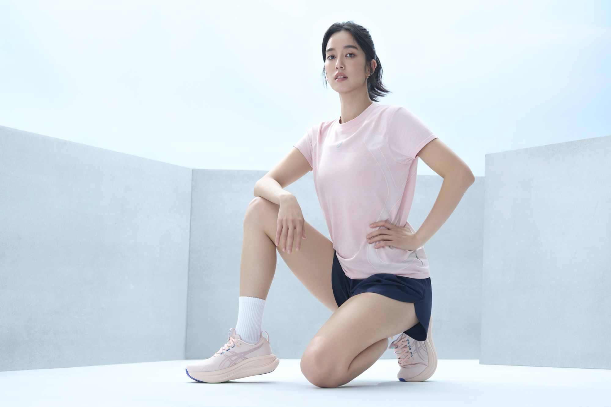 迎接新品上市,品牌形象大使陳庭妮也率先演繹 GEL-NIMBUS 28 與 P.LIFE 系列服飾,跑出輕盈步伐。