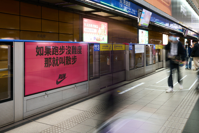整個12月,令跑者共鳴滿點的NIKE巨幅標語同步呈現於台北市政府捷運站多處空間。