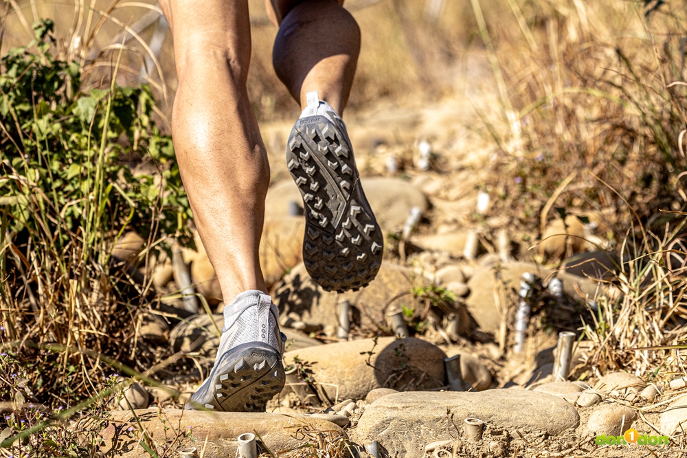 除此之外,此次全新配方 PWRTRAC 大底提供雙腳軟硬適中的鞋感以及不磨腳的後跟襯墊,長時間訓練也能有舒適的體驗,跟隨宇穆下山的步伐,他表示這雙鞋特別適合練習下坡技術地形,即使踩在複雜多變的路面或是階梯,都能自信前行。