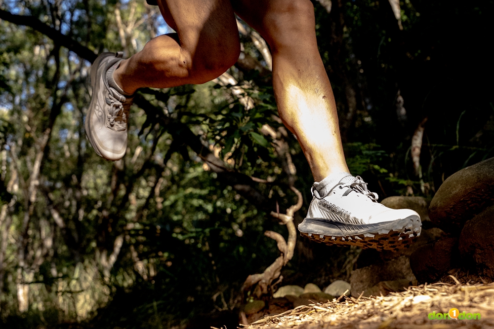 實際體驗最讓宇穆感到驚艷的是中底的緩震效果,此次升級 PWRRUN 泡棉 ,加上鞋底大顆粒的深齒設計,讓他踏在碎石土徑上幾乎感受不到凹凸的存在,再加上鞋身堅實的包覆,保護雙腳不容易翻船,在推進速度時,也能感受到更柔韌的緩衝。