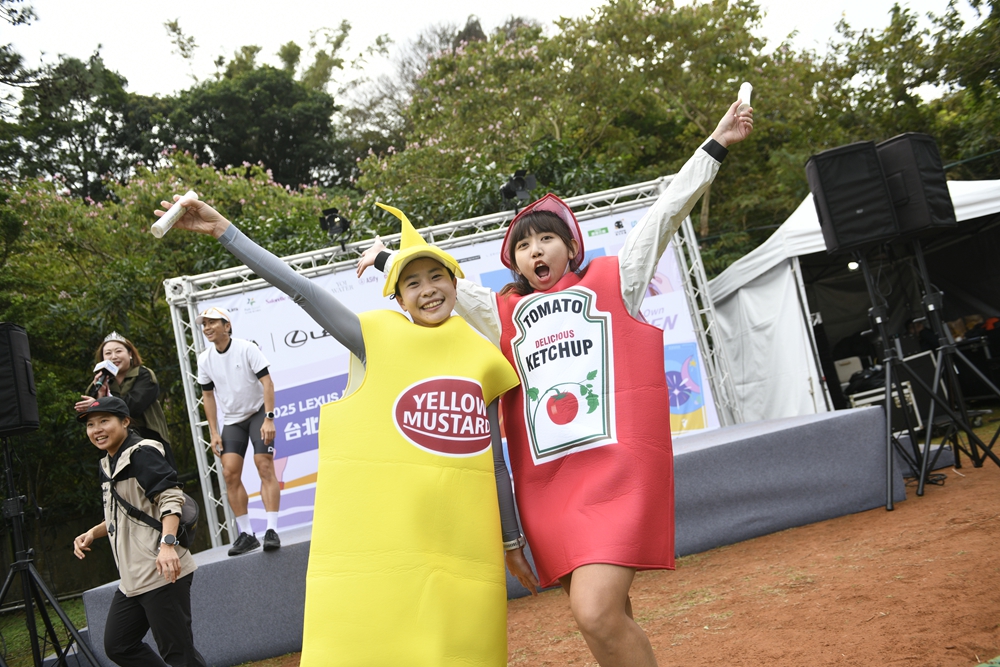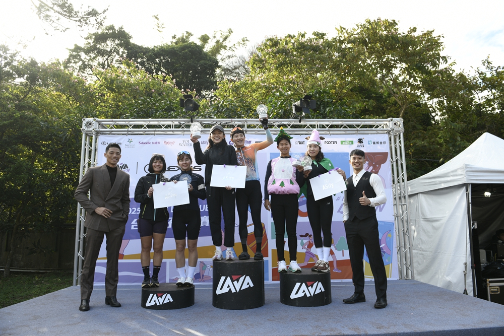 今年賽事亦吸引多位國手參與,以不同形式享受比賽樂趣。全運會三連霸的鐵人女王張綺文,攜手 Run Your Own Run 主理人邱文蕾組隊完成接力挑戰,並以 1 小時 22 分 25 秒奪冠;2024 LAVA QUEEN 女子總排冠軍潘昱婷,則與鐵人三項全國運動會女子組銀牌胡庭勻搭檔,以 1 小時 23 分 52 秒拿下銀牌,兩人更化身麋鹿與綠精靈吸睛登場;而今年 LAVA 大鵬灣鐵人賽男子冠軍潘子易,也以「護花使者」身分陪伴 Meimei 韓梅婷完賽,直呼「太好玩了!」。展現賽事不只競技,更充滿溫暖的一面。