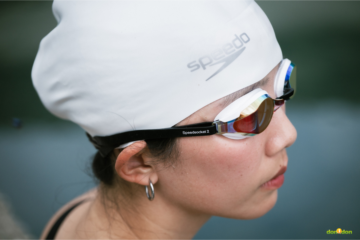 同時這款泳鏡有三種尺寸替換式鼻橋,可以貼合不同眼距輪廓的使用者。「而且靠近眼周的矽膠戴起來很舒服。」她也提及Speedsocket 2的雙帶式鏡帶。「這樣子的鏡帶,能夠更貼合頭部,游起來也不必擔心有滑脫的風險。」