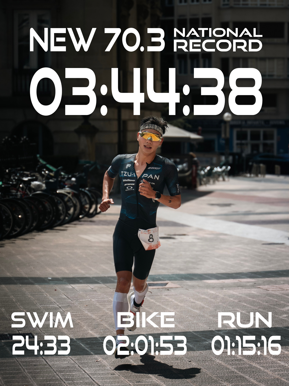 - 2025 年西班牙 VI Half Gasteiz 70.3 超鐵 3 小時 44 分 38 秒華人最佳成績