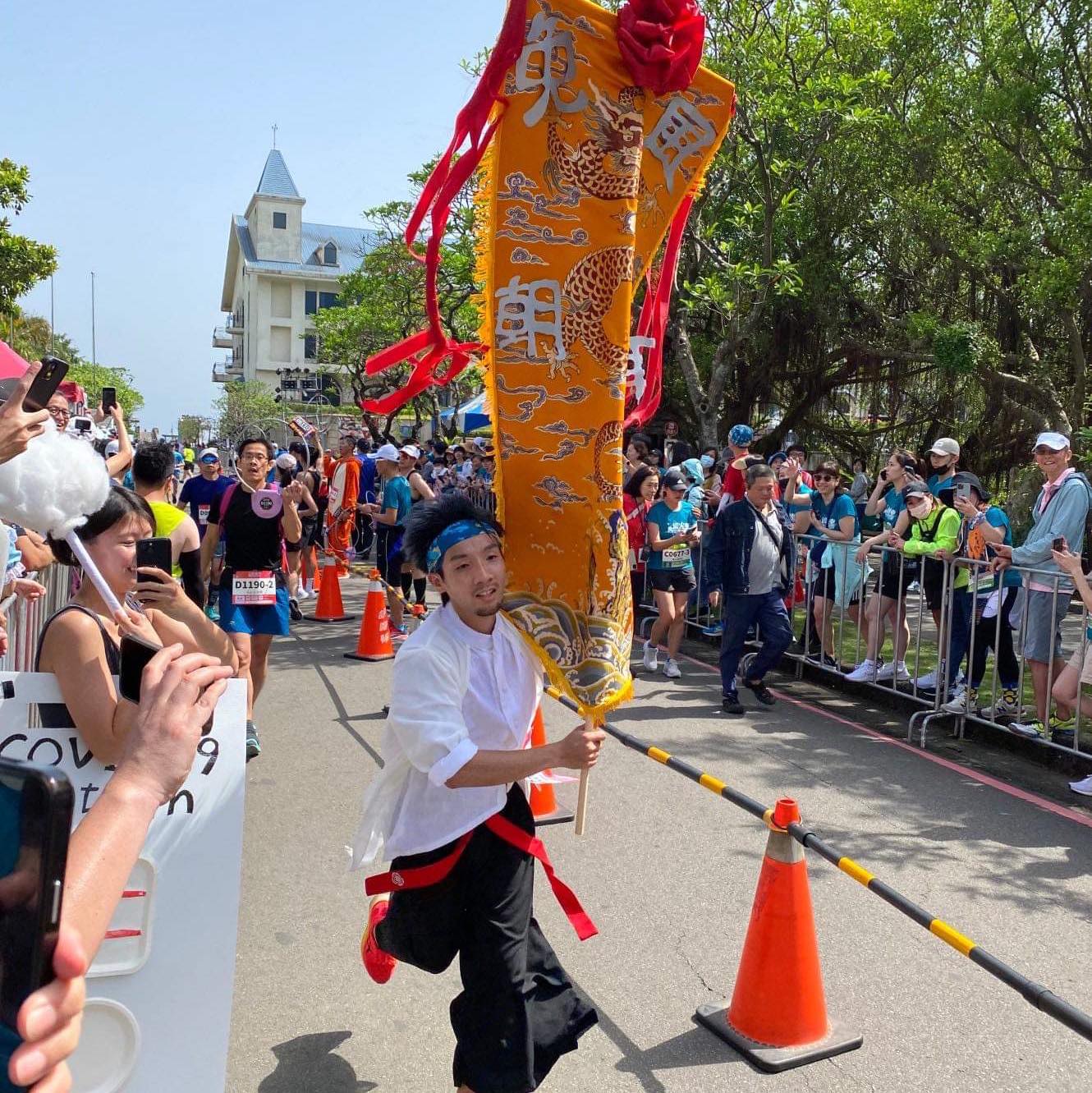 「很多人跑到很累、撐不下去,看到我在前面一身禮服一樣在跑,就會想跟著我繼續跑下去。」 CosMo :「有跑者回到終點後,會來跟我說謝謝,說是跟著我跑才撐到最後的。」
