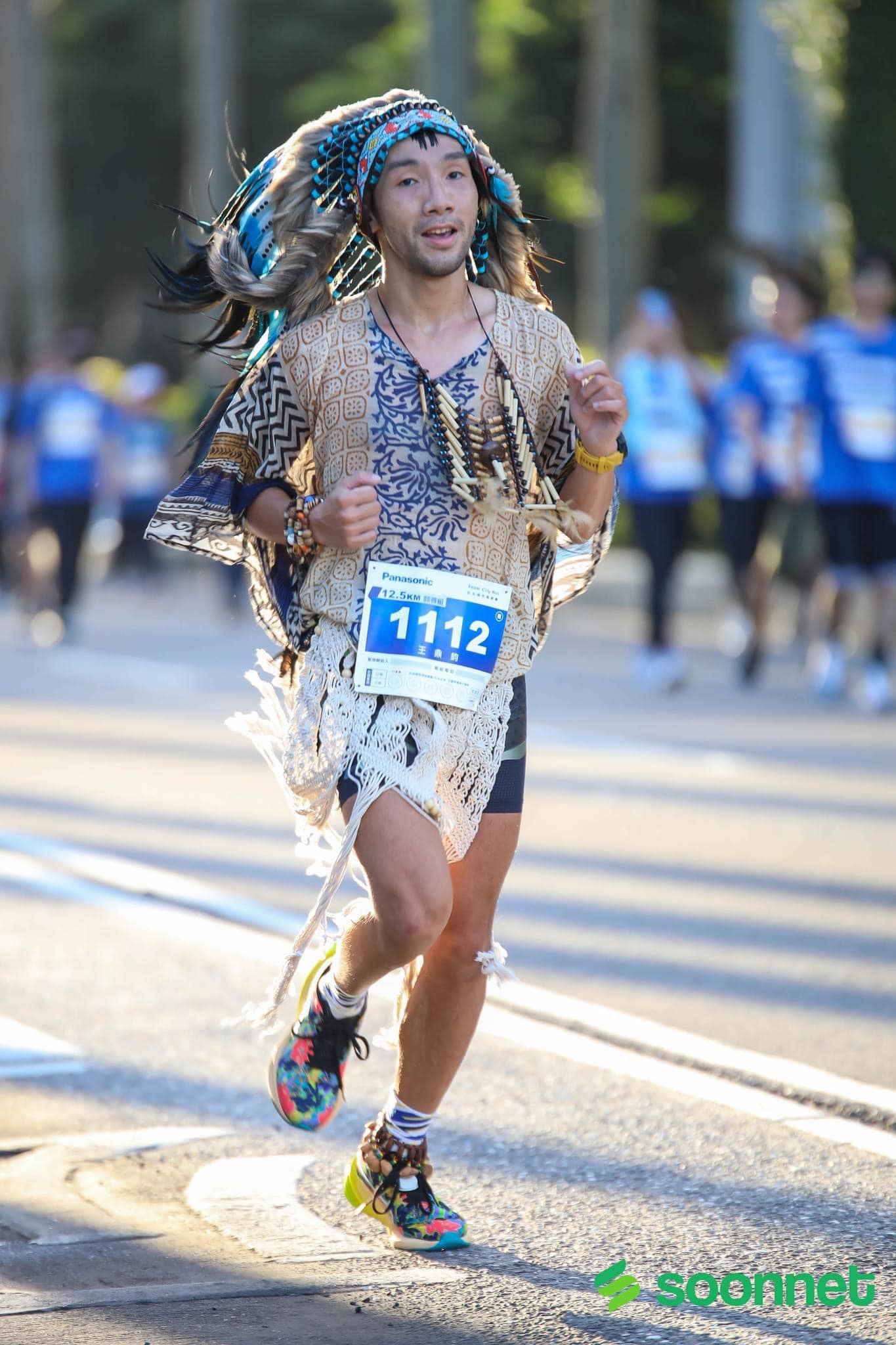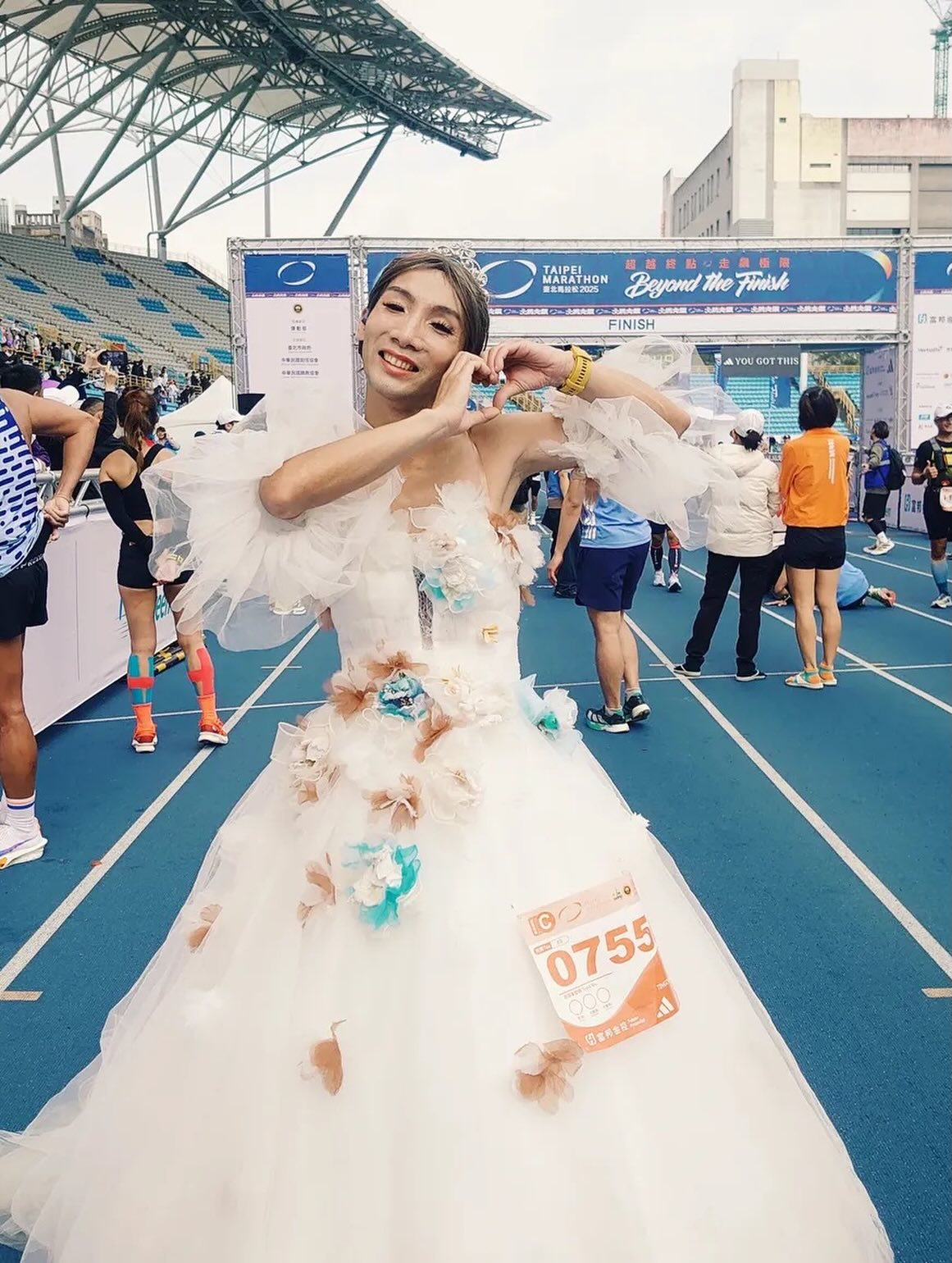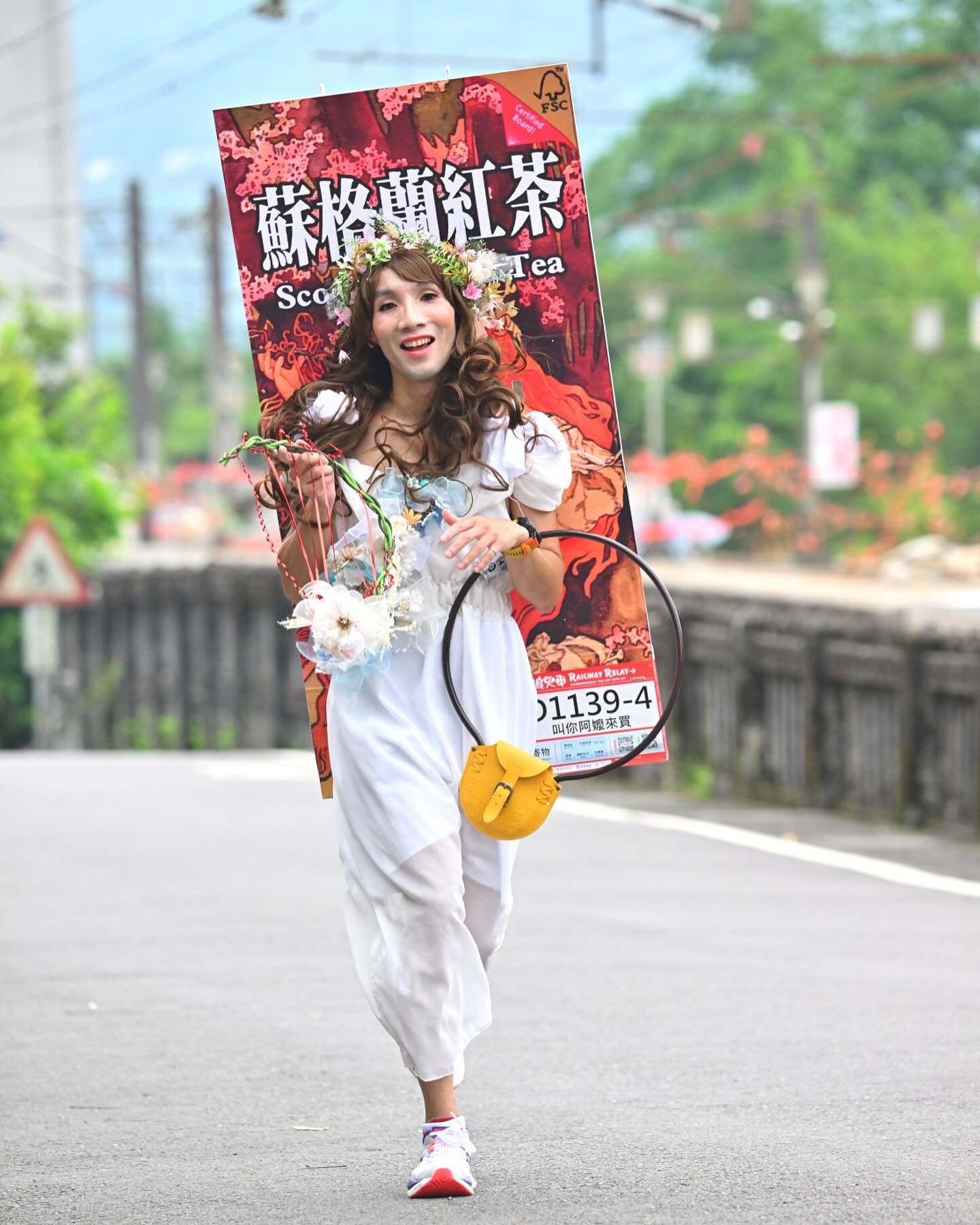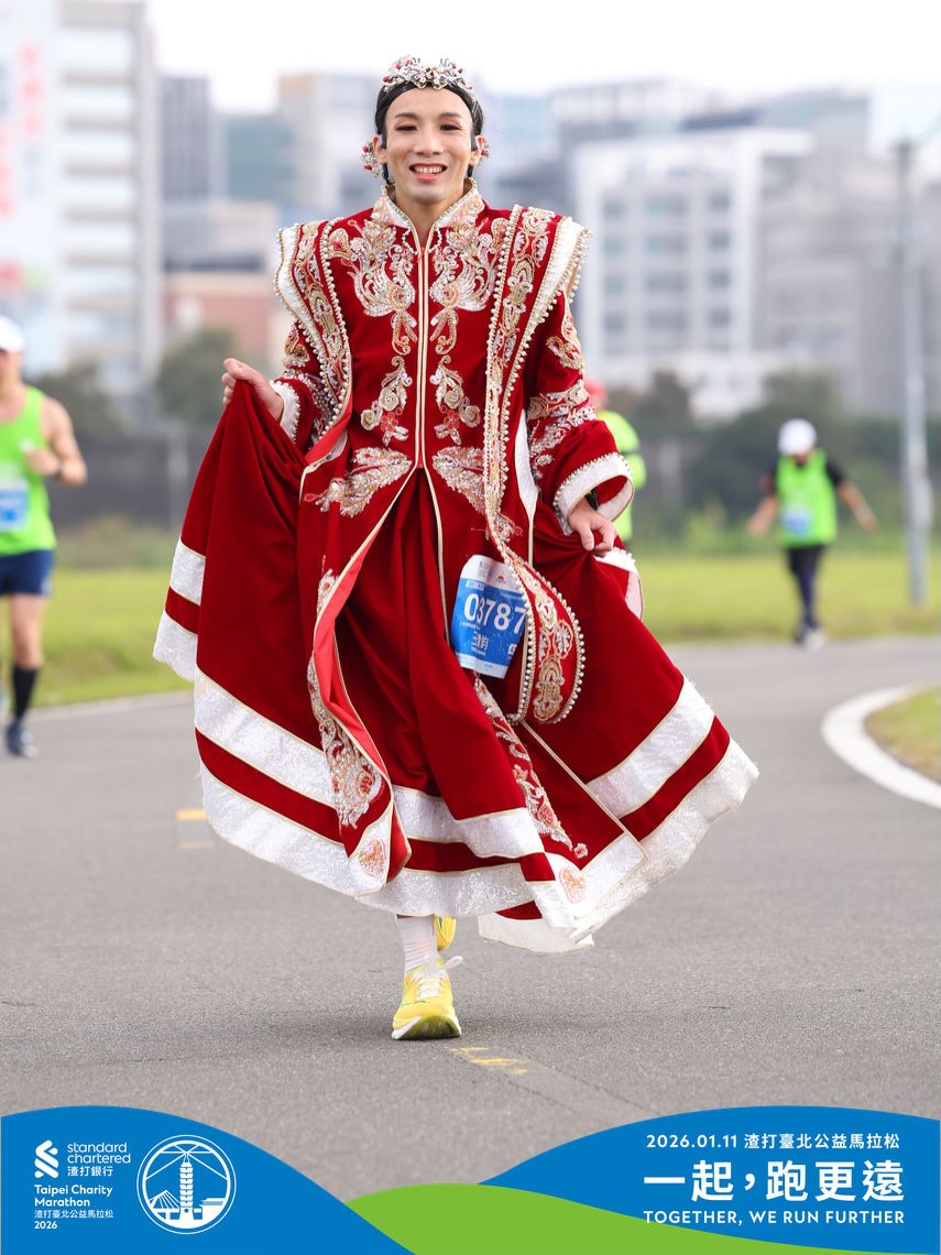「像我現在就有一個系列,臺北馬就是婚紗、禮服系列。」就像某些跑者固定用同一個 IP 符號出現,久了,就成為觀眾會期待的存在。除此之外,他也在其他場次扮演過空姐、民俗人物、印地安人等等。