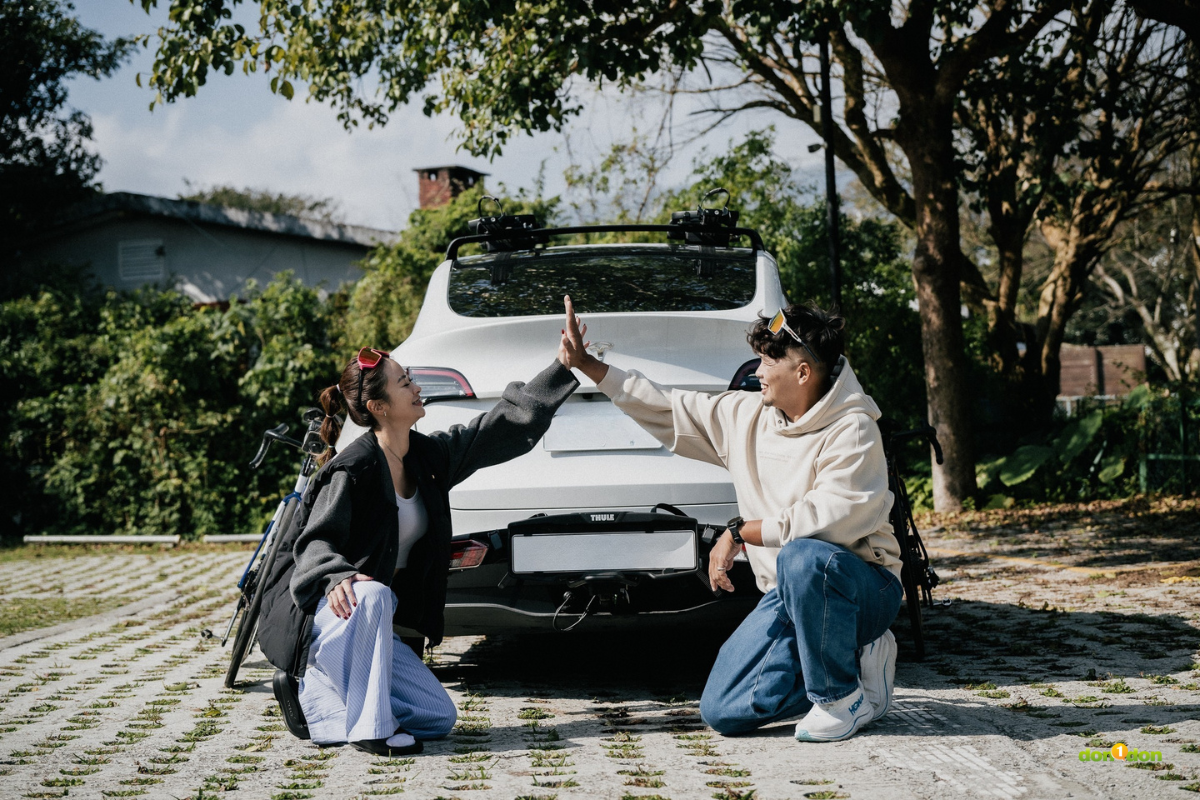 海珊分享:「Epos 操作十分直覺,三點式的扣環上下拉動幾下,只要聽到喀聲就是鎖好了,」動輒數十萬的碳纖維車架是最珍貴的戰友,過去使用過後掛式車架,最令他們兩人擔心的還是夾持力道不均、或是路面顛簸導容易致車體磨損,「所以,Epos 的固定點在車輪,就完全解決我的擔憂了。」海珊認為不接觸單車車架的固定方式,相對來說是安全的;同時將單車鎖穩後掛在後車尾,行進間也不會有放置於車頂時發出的風切聲。「跟車友討論時,才發現很多人對於車頂架的風切聲多少都有點壓力。」他笑說。