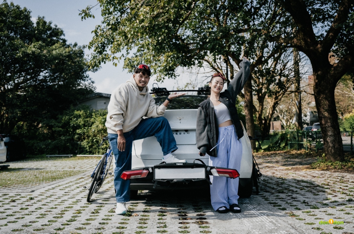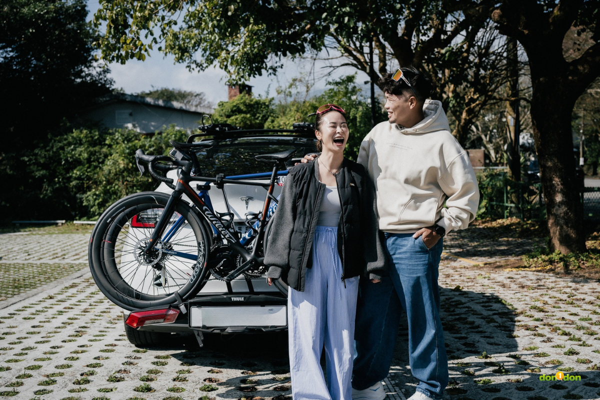 身為潛水教練同時熱愛公路車的海珊及伴侶 914,兩個人時常載著單車全台比賽跑透透。海珊分享,以前都是使用車頂架載運單車,但遇到限高處就必須要有人下來挪車。「天氣好的時候還行,遇到刮風下雨時真的會很狼狽, 914 曾經一個人撐傘架著兩台單車,在雨裡等我停好車回頭接她。」海珊笑著說。「所以很常 914 都會唸叨:為什麼都是我下車!」