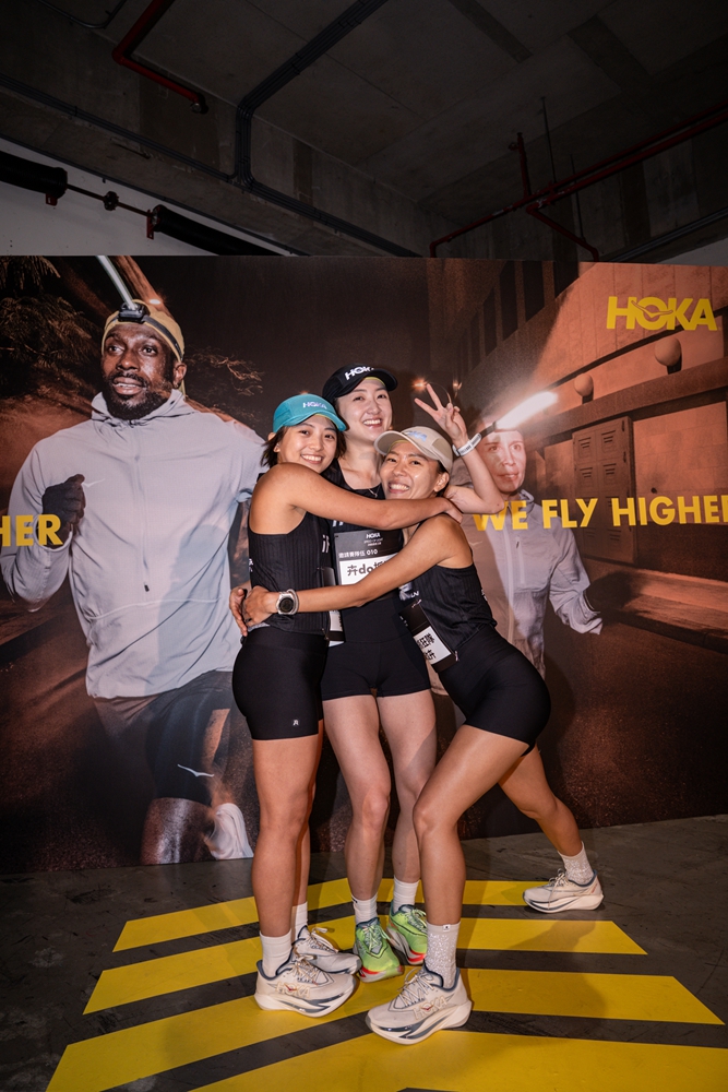 她們不是同一個跑團的隊友,而是各有戶外運動背景的時代女性──芷瑜 Dora 創業開設果汁店、玟卉就職於證券業, Sandra 則是整形外科診所擔任護理師。把三個人聚在一塊,是一場由專業運動 HOKA 品牌舉辦的配速燈挑戰活動。