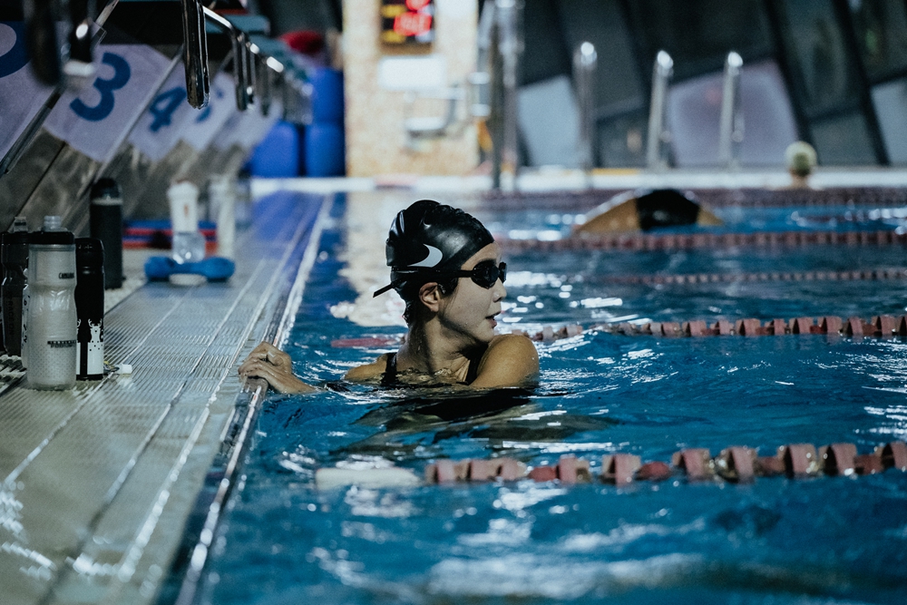 而原本就是路跑好手的斑比,她則是在游泳卡關。從一開始游 50 公尺就要停下來喘,到現在能連續來回,慢慢抓到游泳好手口中的「水感」——不是用力拉,而是把身體自然地送出去。