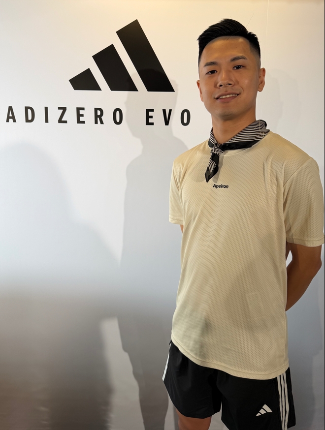 Apeiron Sport 創辦人 Kiwi 則從「運動融入生活」的角度出發,分享了將跑步日常化的心得。他坦言自己起初並不習慣長時間跑步的枯燥,但透過音樂與社交,跑步變得相當自然而然。針對 adidas 引入的 120-160 BPM 音樂節奏,Kiwi 認為這對跑者是極佳的感官刺激:「從熱身時的情緒帶入,到高強度訓練時需要的重節奏,音樂能幫助跑者找到自己的步頻。」此外,他觀察到 EVO SL 的鞋底舒適度對新手非常友善,能在肌力不足的階段提供完整支撐,減少受傷風險,無論是跑步訓練或日常旅遊步行都非常合適。