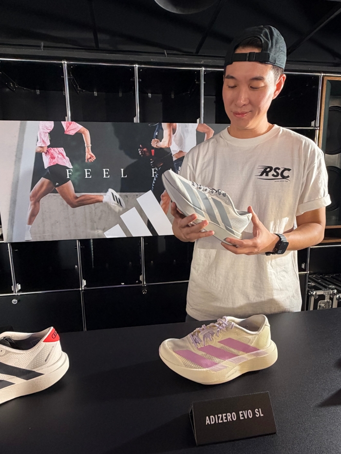 透過三位創辦人的分享,不難發現 ADIZERO EVO SL 不僅是一雙專業的訓練鞋,更是一件契合年輕世代追求「性能與潮流並存」的城市生活單品。結合社交、派對與音樂的跑團正在蔚為流行,吸引越來越多年輕人投入跑步,而 ADIZERO EVO SL 精煉而霸氣的外型,也完美契合年輕跑者對性能與潮流外型的雙重追求。