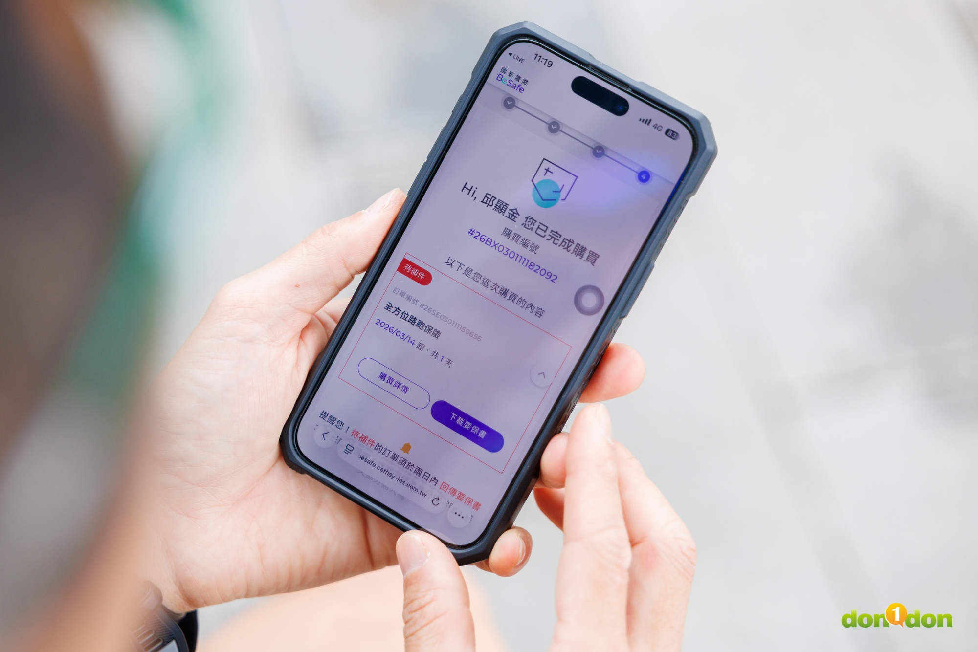 他也提及自己其實是一個很在乎保障的人,「所以 BeSafe 推出時,我就有先聯絡過我國泰的保險員,」他笑著說:「結果他說滿簡單的,叫我賽前四天自己手機 APP 投保就好。」