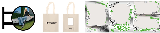 PUMA 寵粉無極限,只要拍下你在快閃店的精采瞬間,分享至 IG 或 Threads 並 #PUMATAIWAN,即可掃描QR Code選擇客製化相框,至外帶窗口兌換拍印乙次,打造專屬的潮流紀念。於 H-STREET 潮流得來速完成購物體驗,更可獲得大禮包:ROSÉ 迷你燈箱招牌及客製化帆布袋,將你拍印的相片放入帆布袋,打造別具意義的客製化紀念。