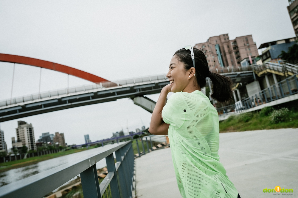 「不過,畢竟我是休閒跑者,褲子的口袋對我就太少了。」她笑說:「要放手機,又要放能量膠,出門跑步像是去野餐一樣。」合身舒適的緊身褲,在腰間、大腿外側各有一個小口袋。