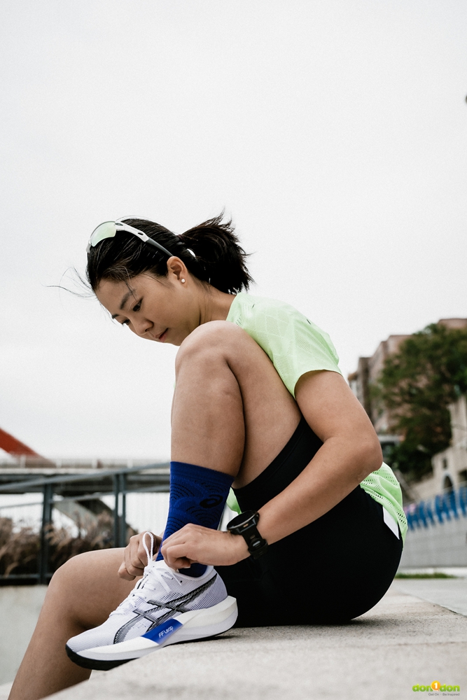 為了在忙碌、碎片化的時間裡維持體能,以理倚仗了 ASICS 專業運動裝備,從專業跑者所需的上衣與褲子、日常訓練跑鞋 SUPERBLAST 2 ,以及專為賽事、速度訓練而生的競速跑鞋 MAGIC SPEED 5 。儘管她謙虛地表示,訓練並沒有完全走完一個週期,但東京馬拉松以 4 小時 13 分完賽的表現,依舊驗證了她的努力與堅持。