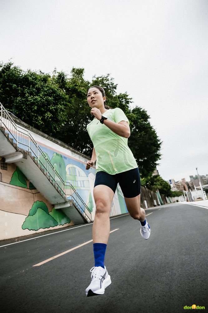 除了訓練、賽事專用鞋款之外, ASICS 菁英導向的服飾也讓以理非常有感,俐落的剪裁加上具突破性的配色,可說是襯托菁英出賽的頂級穿搭。由此,她也不忘幽自己一默。