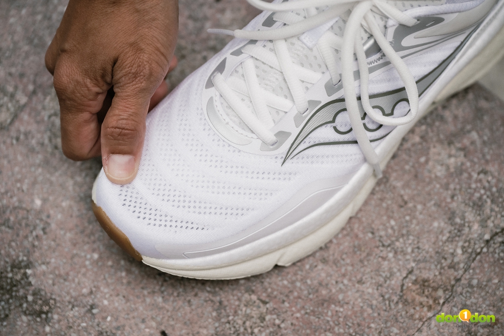 鞋面部分則強調包覆與舒適的平衡。高等級工程網布帶來良好的透氣性,使鞋內環境在長時間運動後仍能維持乾爽。同時,也在男女鞋款增加了寬楦款,讓腳掌較寬的跑者也能跑得舒適、自在。