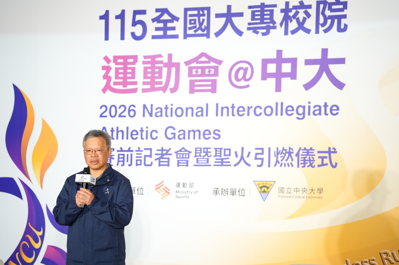 115年全國大專校院運動會(以下簡稱全大運)將於5月2日至5月6日在國立中央大學盛大舉行。運動部於今(8)日在運動部大樓舉行全國記者會暨聖火引燃儀式,由運動部常務次長洪志昌與中央大學校長蕭述三共同主持。在各界貴賓見證下,正式點燃象徵勇氣與熱情的聖火,宣告全臺頂尖大專運動員將齊聚中大同場競技,共襄盛舉。