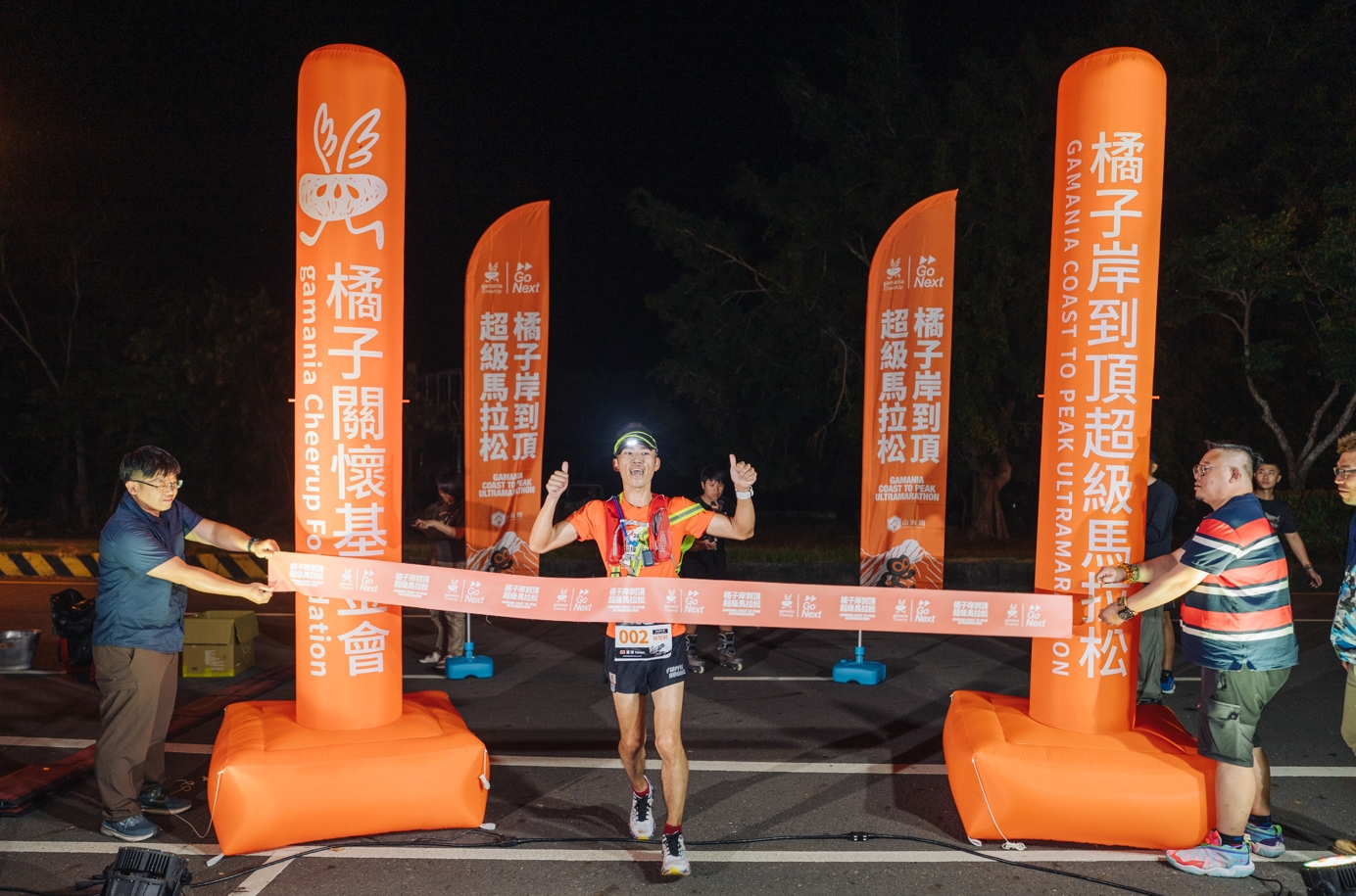 邁入第四年的橘子岸到頂超級馬拉松不僅具備 AIMS 賽道認證及 IAU(國際超馬總會)銅標認證,更已成為亞洲超馬版圖中的指標性舞台。本屆吸引澳洲名將 Phil Gore 連續兩年來台,與曽宮道(Toru Somiya)等日本、台灣頂尖跑者展開這場長達177公里的冒險旅程,於賽中原先落後15公里距離的最終 Phil Gore 勇奪冠軍,寫下18時21分的全新紀錄,超越去年挑戰成績。Phil Gore 表示,多變的地形與溫差極具挑戰,但他更享受在山海圳與自我對話的過程,印象最深刻是阿里山的日出時刻。而本次總排行第二名及國內第一名佳績的台灣選手張逢源,本職為公務人員,熱愛跑步的他,已連續三年挑戰這條賽道,雖於2024年、2025年未能完成177公里的挑戰,但反而激發他秉持挑戰信念、以完備狀態克服困難,為自己的冒險故事寫下全新篇章。此外,日本女子好手兼松藍子(Aiko Kanematsu)亦展現深厚實力,以22時25分成功摘下女子組冠軍。