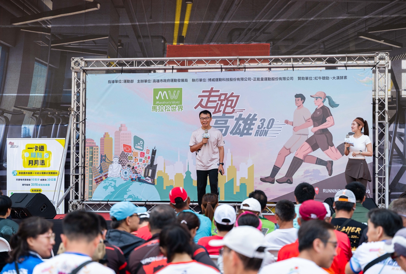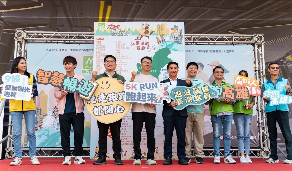 深受好評的「走跑高雄2.0」去年吸引7,524人報名參加、累積逾142萬筆運動紀錄,運發局今年持續與運動紀錄平台APP「馬拉松世界」合作,推出「走跑高雄3.0活動專區」。今(19)日上午於苓雅運動園區舉辦「走跑高雄3.0暨運動觀光遊程啟動記者會」。記者會現場更展現企業對全民運動的支持,紅牛聰勁大漢酵素特別準備應援補給禮包,象徵運動品牌與政府攜手推動智慧運動城市,也為即將展開的 38 區挑戰任務拉開精彩序幕。