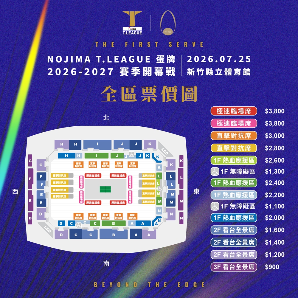 桌壇史詩 Nojima T.LEAGUE 蛋牌 2026 賽季開幕戰 7月25日登台落腳新竹